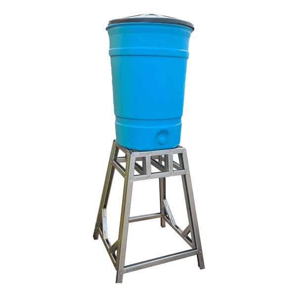 Вместительный резервуар из прочного и безопасного пластика на подставке из оцинкованной стали. Бак объемом 200 литров оснащён краном, который позволяет дозировать воду. Хорошее решение для садового участка.