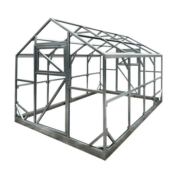 Каркас теплицы изготовлен из оцинкованного стального профиля 40 × 40 мм, обеспечивающего повышенную устойчивость к коррозии. С одной стороны конструкции предусмотрены двери с вентиляционным окном, с другой — вентиляционное окно без двери. Каркас поставляется в разобранном виде, что облегчает транспортировку. В стандартной комплектации используется поликарбонат толщиной 4 мм, который обладает достаточной прочностью и теплоизоляционными свойствами для сезонного использования. По желанию теплицу можно оснастить более толстым поликарбонатом: 6, 8, 10 или даже 16 мм.